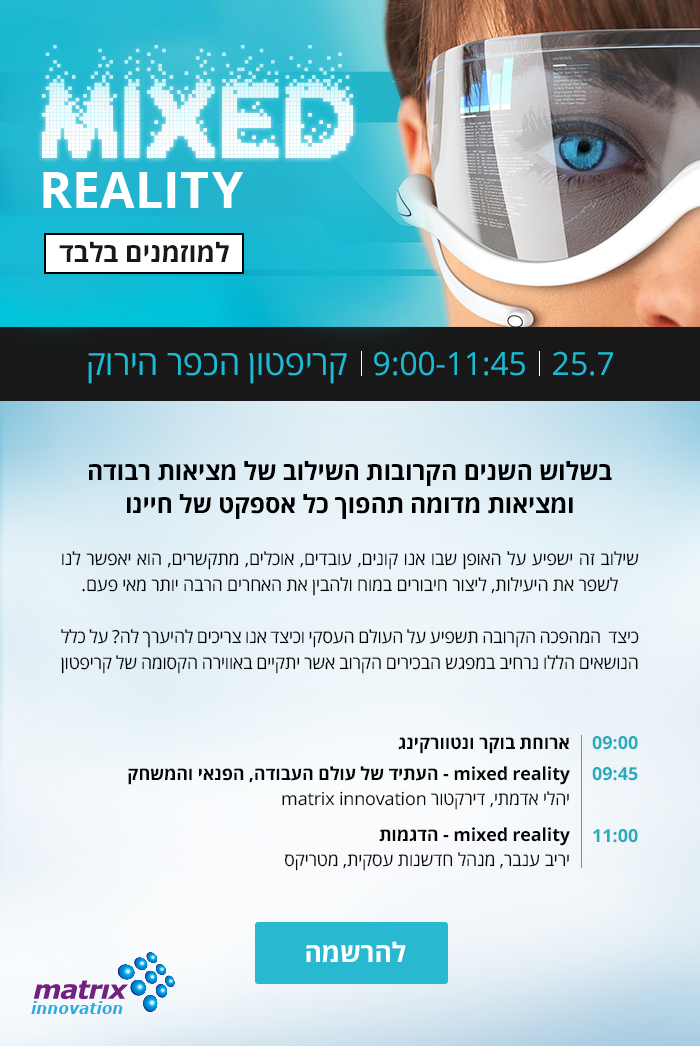9:45 Mixed Reality - העתיד של עולם העבודה, הפנאי והמשחק - יהלי אדמתי, דירקטור matrix Innovation